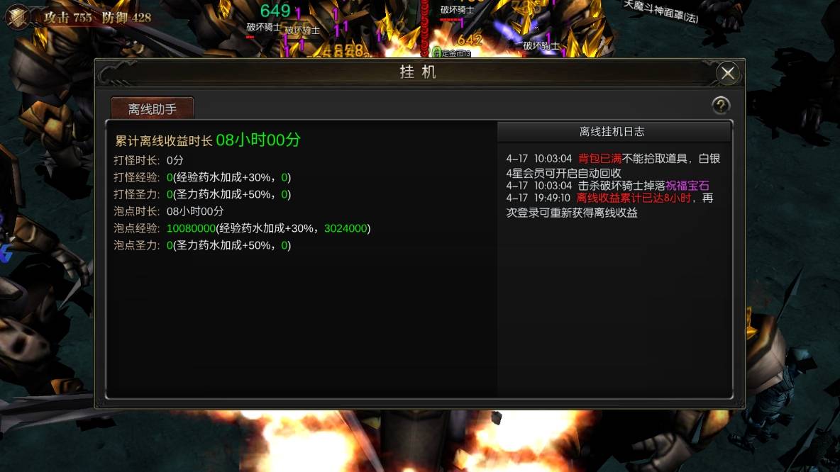 离线挂机:如果不能长期在线,可以借助离线挂机功能来获得经验。可在钻石商城购买离线药剂以延长挂机时长。