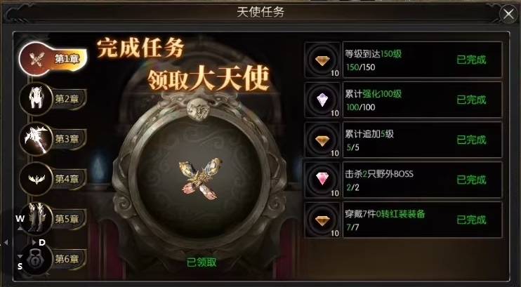 大天使任务:完成主线任务后,能够接取大天使任务。这些任务将提供丰厚的奖励,包括称号、钻石和天使碎片。收集满100个大天使碎片后,可合成一把大天使武器,这把武器是游戏中顶级装备之一。