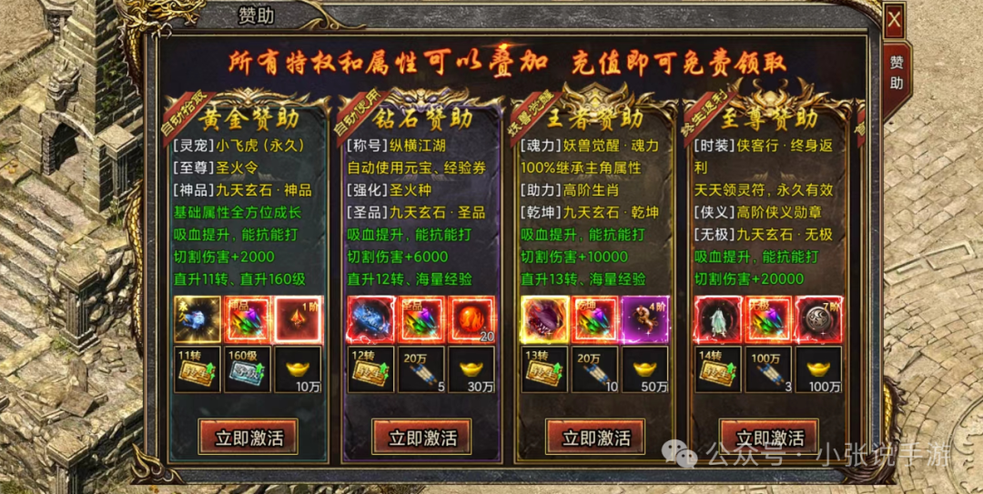 98元档位至尊赞助(每日领取30万灵符,转生至14级)