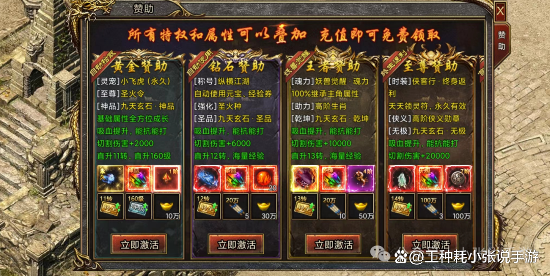 8元档位黄金赞助(自动获取,转生至11级)